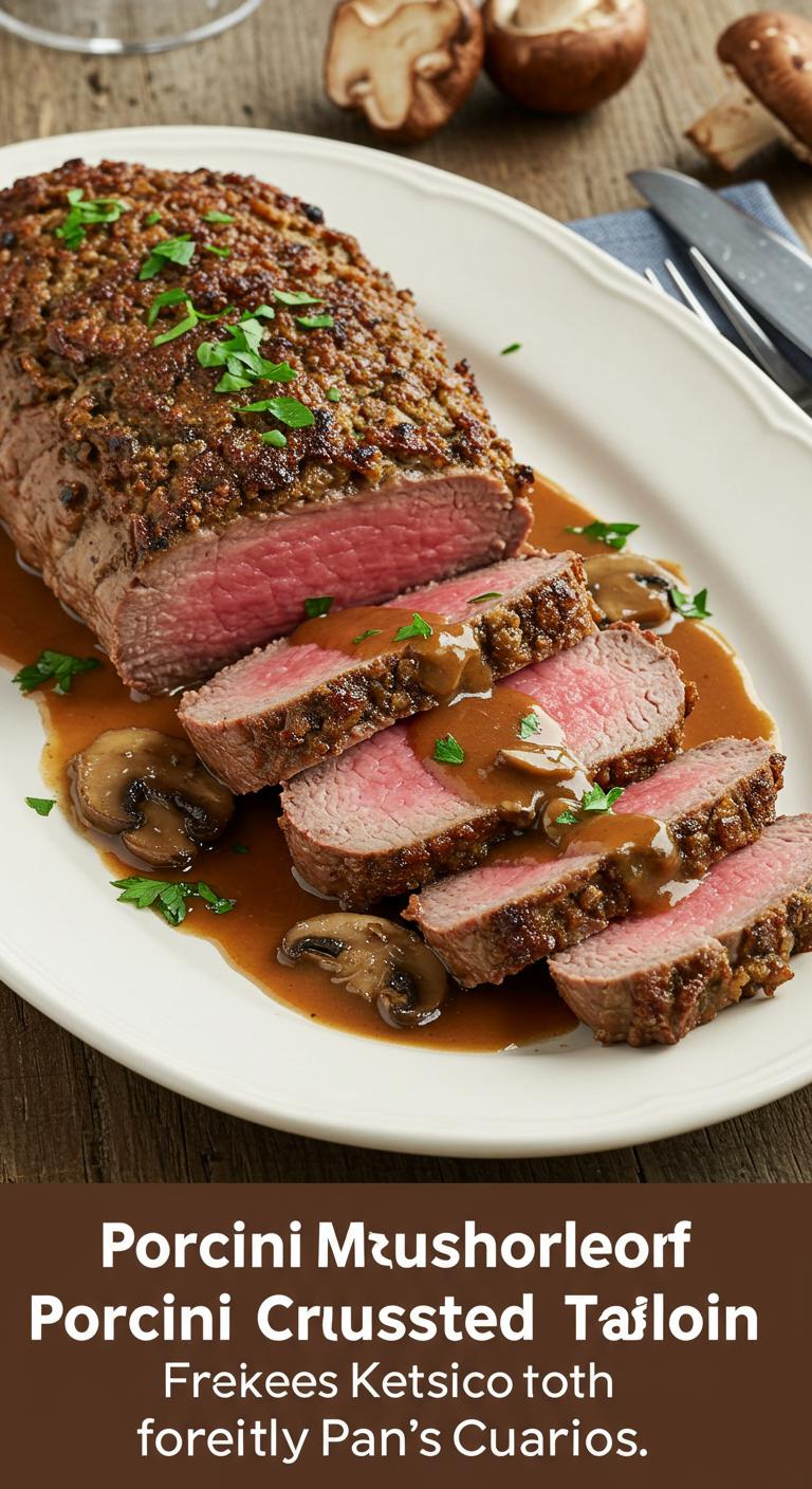 Porcini Mushroom–Crusted Tenderloin — earthy, savory, and elegant with a crisp mushroom crust.