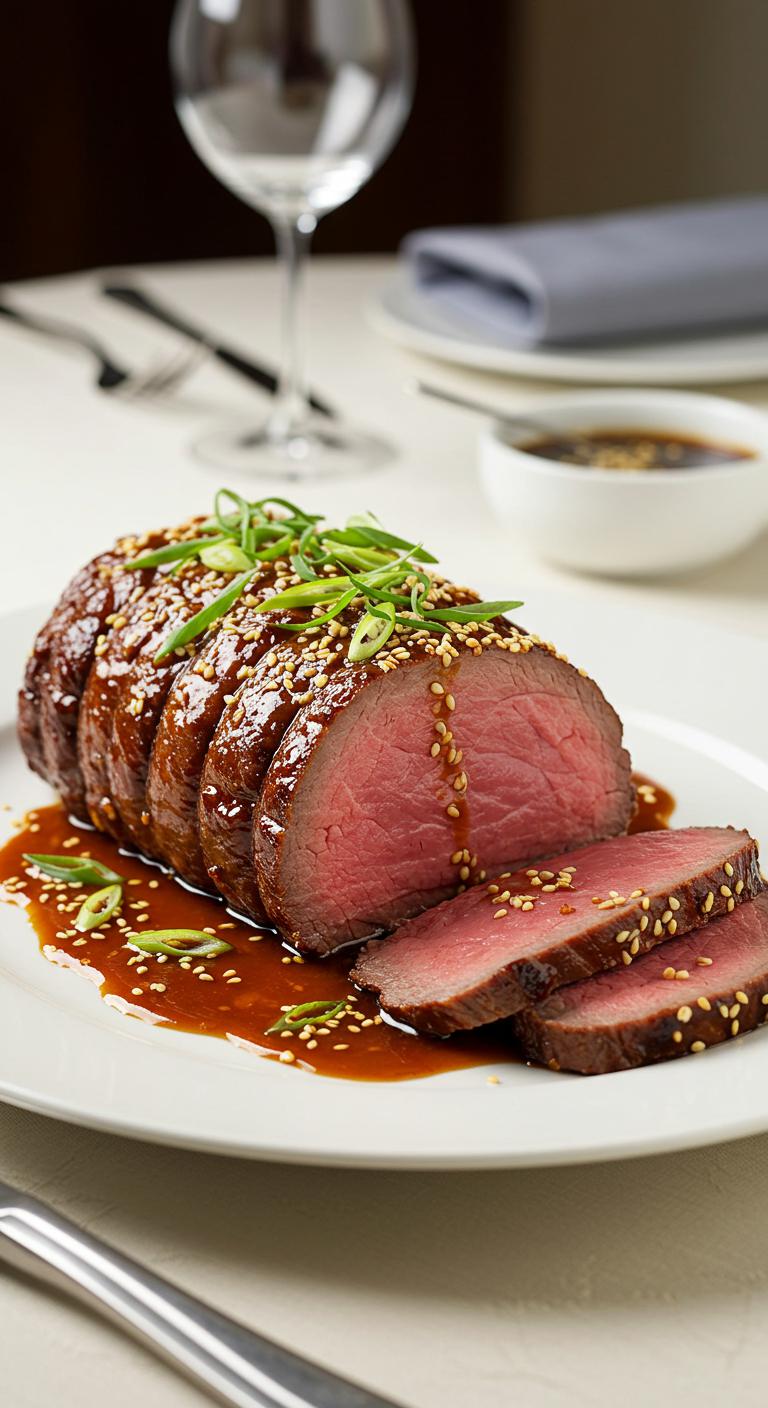 Enjoy the rich, glossy bite—this miso-glazed tenderloin is savory, slightly sweet, and utterly irresistible.