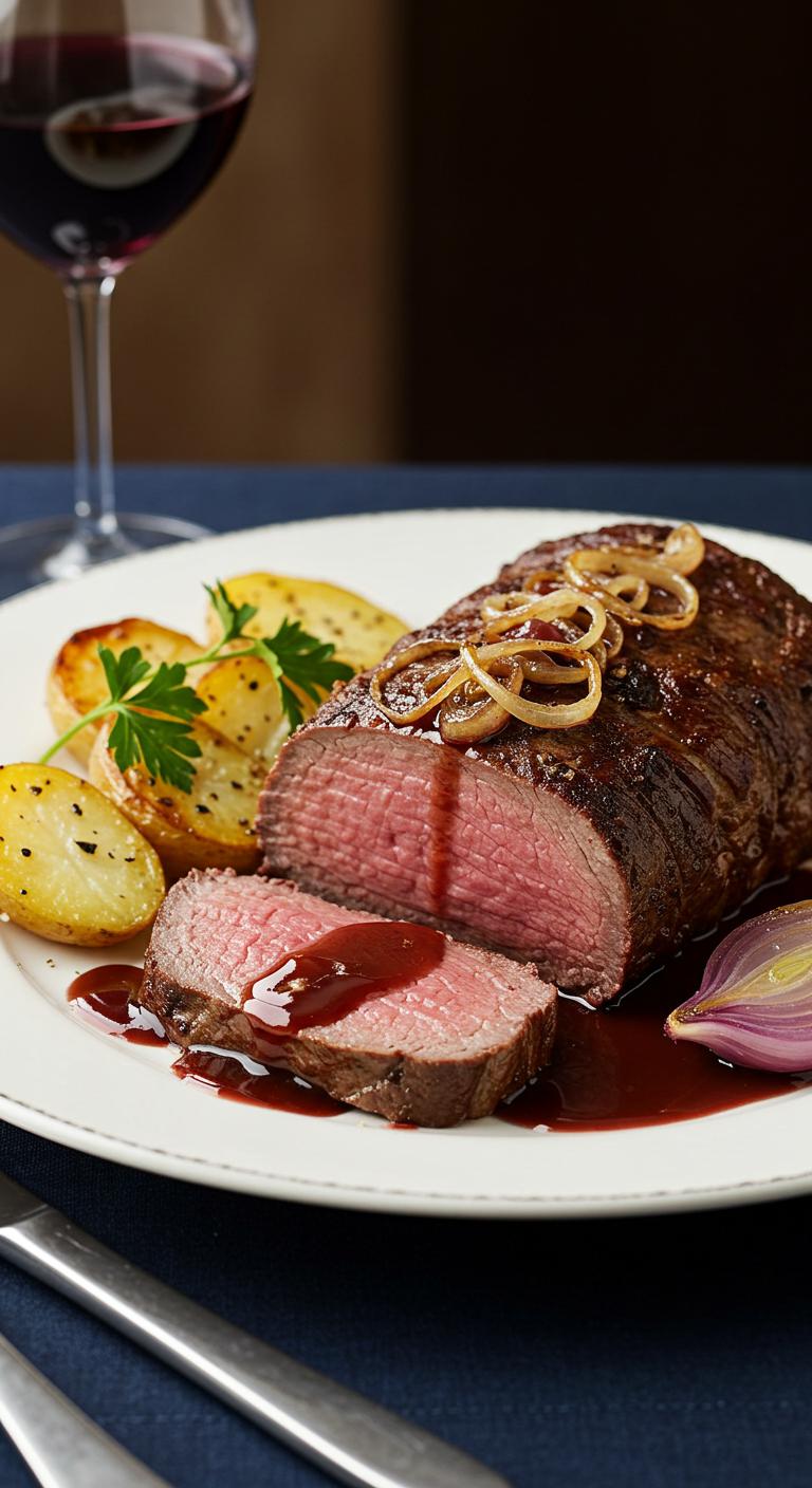 A rich, elegant beef tenderloin roasted with shallots and red wine for a deeply flavorful, restaurant-style centerpiece.