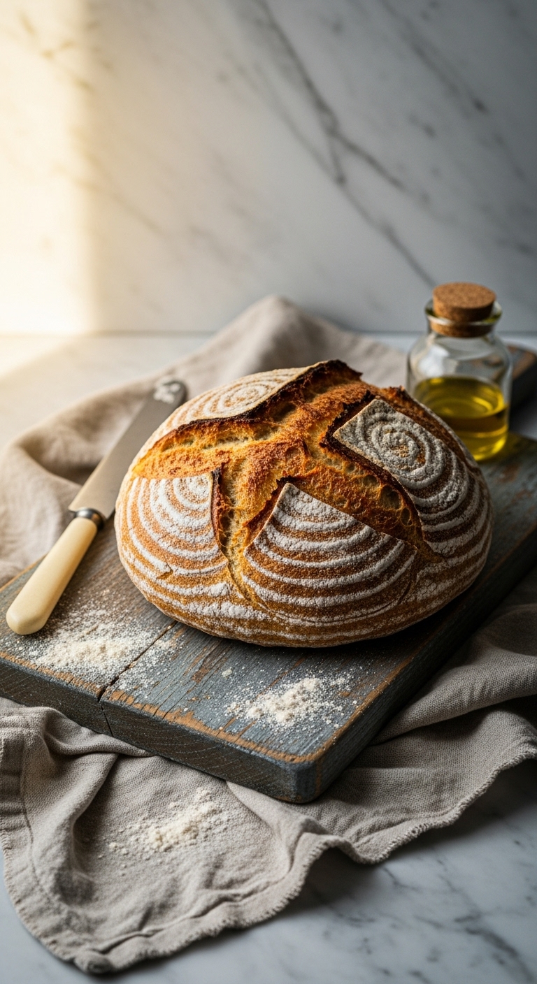 Serve the boule on a wooden board with olive oil and flaky salt. Garnish slices with softened butter or herb-infused oil. Pair with soups, stews, or a cheese board. Store at room temperature wrapped in a linen bag for 2–3 days. Freeze sliced loaf for up to 3 months. Great for weekend brunch or cozy dinners.