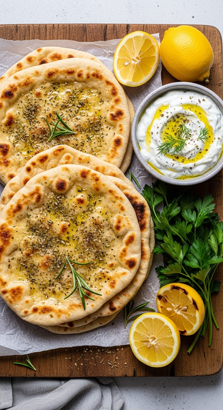 Use as wraps for grilled veggies, meats, or falafel. Brush with garlic butter and serve with tzatziki or hummus. Store cooled flatbreads in a zip-top bag up to 2 days, freeze for longer. Reheat in a hot pan for best texture.