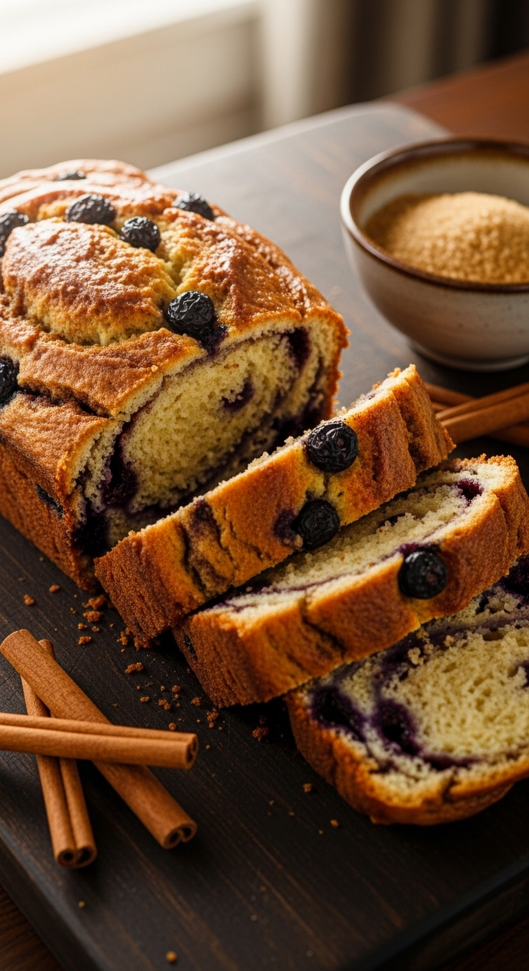 This recipe folds a tangy cream cheese ribbon into the loaf. The swirl gives soft, creamy pockets against tart blueberries. It’s rich but still lunch-box friendly. You’ll enjoy a moist crumb and a mild tang from the cream cheese. It pairs well with savory fillings too.