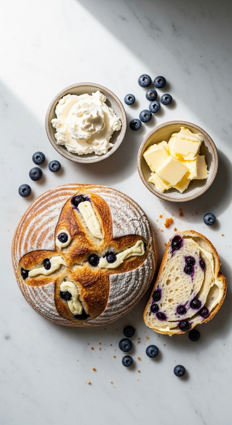 - Toss blueberries with 2 tbsp flour. Gently fold them into the dough on the last stretch-and-fold to avoid crushing.