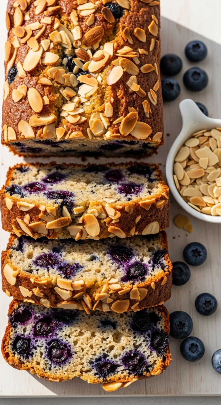 Toasty almonds add crunch and a nutty note. Almond extract deepens flavor while slivered almonds add a crisp top. The crumb remains tender and rich. It’s elegant for lunch box sandwiches and pairs well with mild cheeses. You’ll taste toasted almond and sweet blueberries.