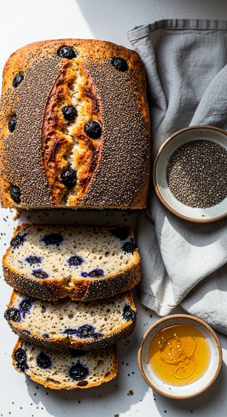 Chia seeds add texture, omega-3s, and a subtle crunch. They also help keep crumb moist. Blueberries remain the star, with seeds adding visual interest. This loaf is nutritious and sturdy. It’s perfect for health-conscious lunch boxes.
