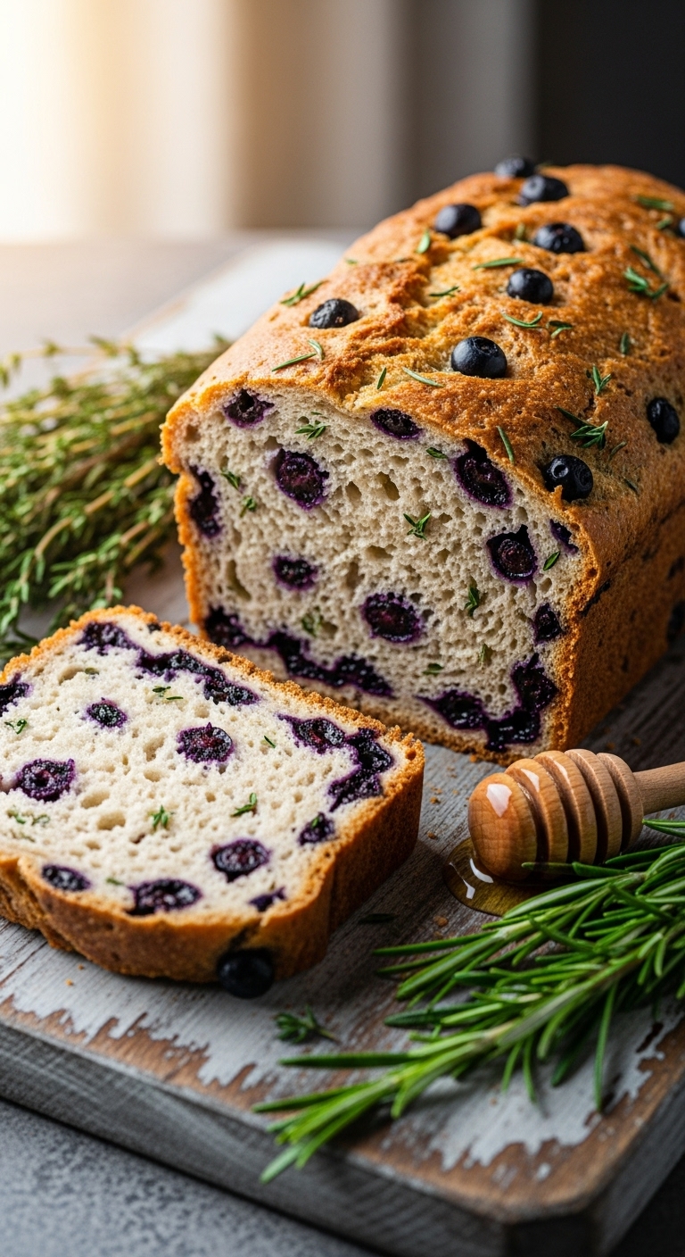 Pair with roasted chicken or herb goat cheese for savory sandwiches. Garnish with extra thyme sprigs. Store at room temperature 2–3 days or freeze slices. Herbs give a fresh, seasonal twist to lunch boxes.