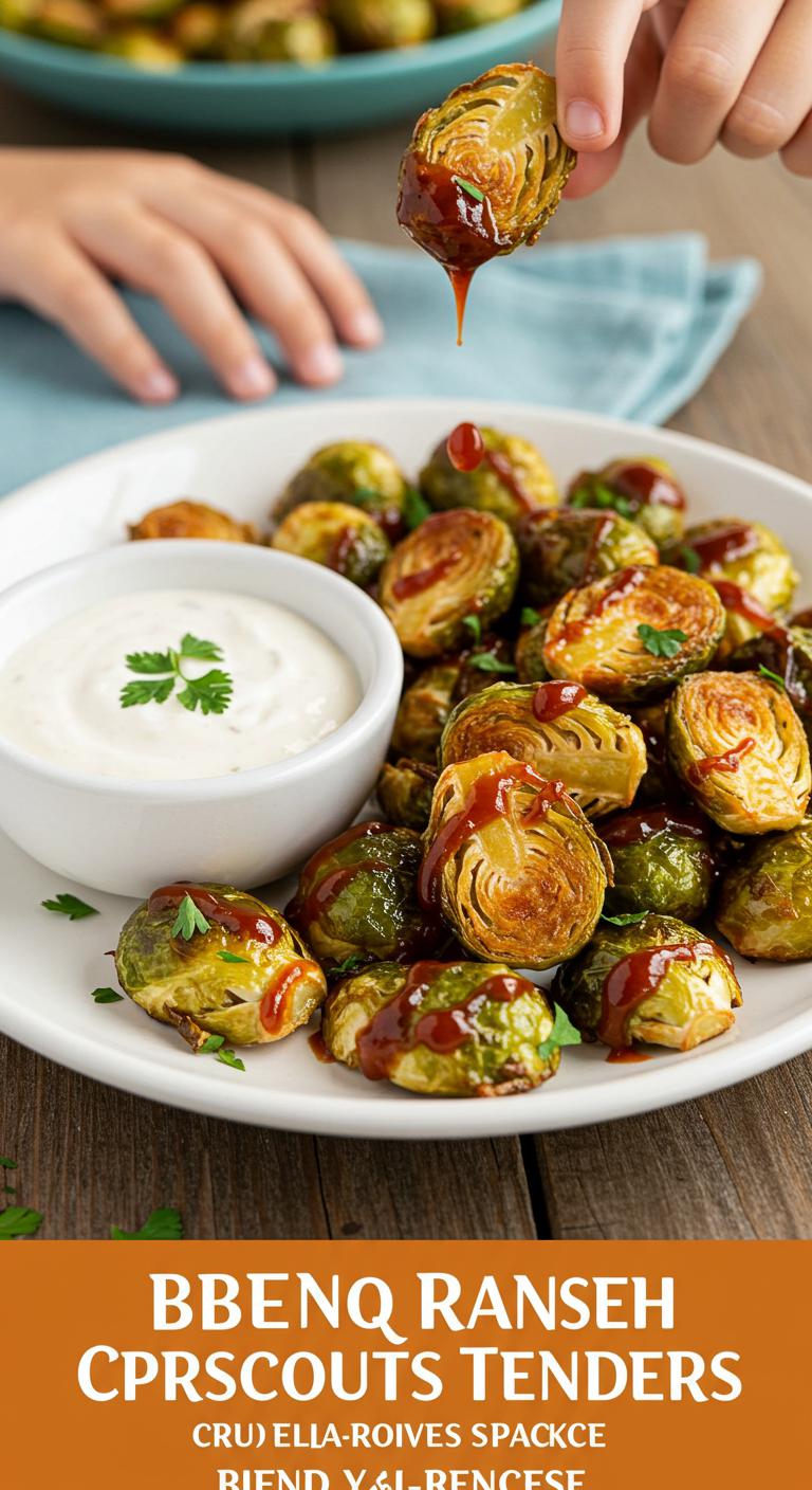 BBQ Ranch Crispy Brussels Sprouts Tenders — a kid-friendly, crunchy twist on sprouts with sweet BBQ and tangy ranch flavors.