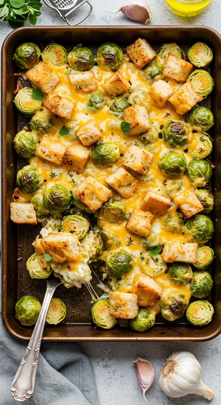 Cheesy Garlic Pull-Apart Brussels Sprouts Casserole