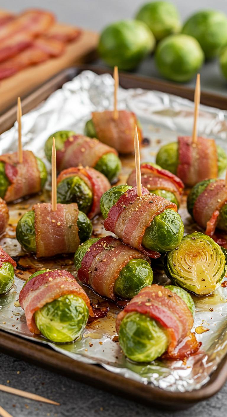 Crispy little bacon-wrapped Brussels sprouts bites — salty, crunchy, and kid-approved.