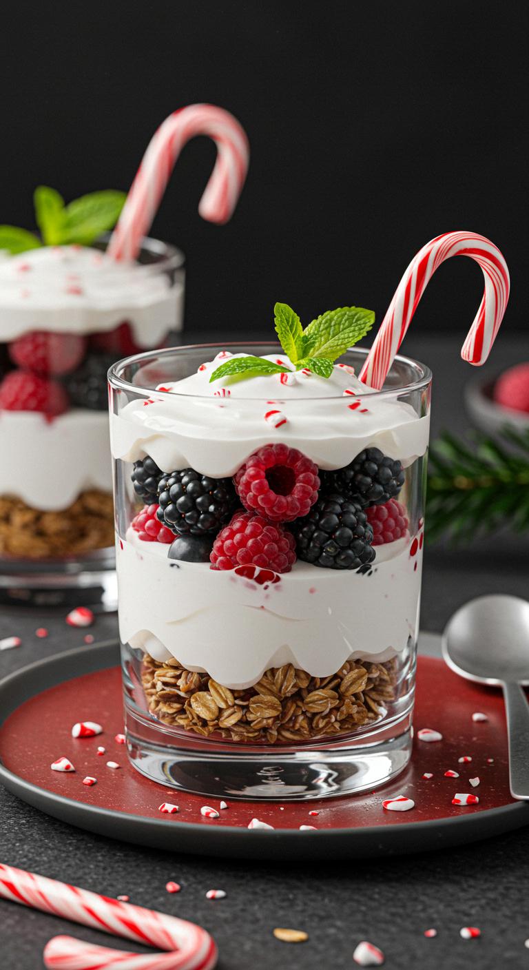 A cool, festive parfait that crunches with peppermint and swirls like a candy cane.
