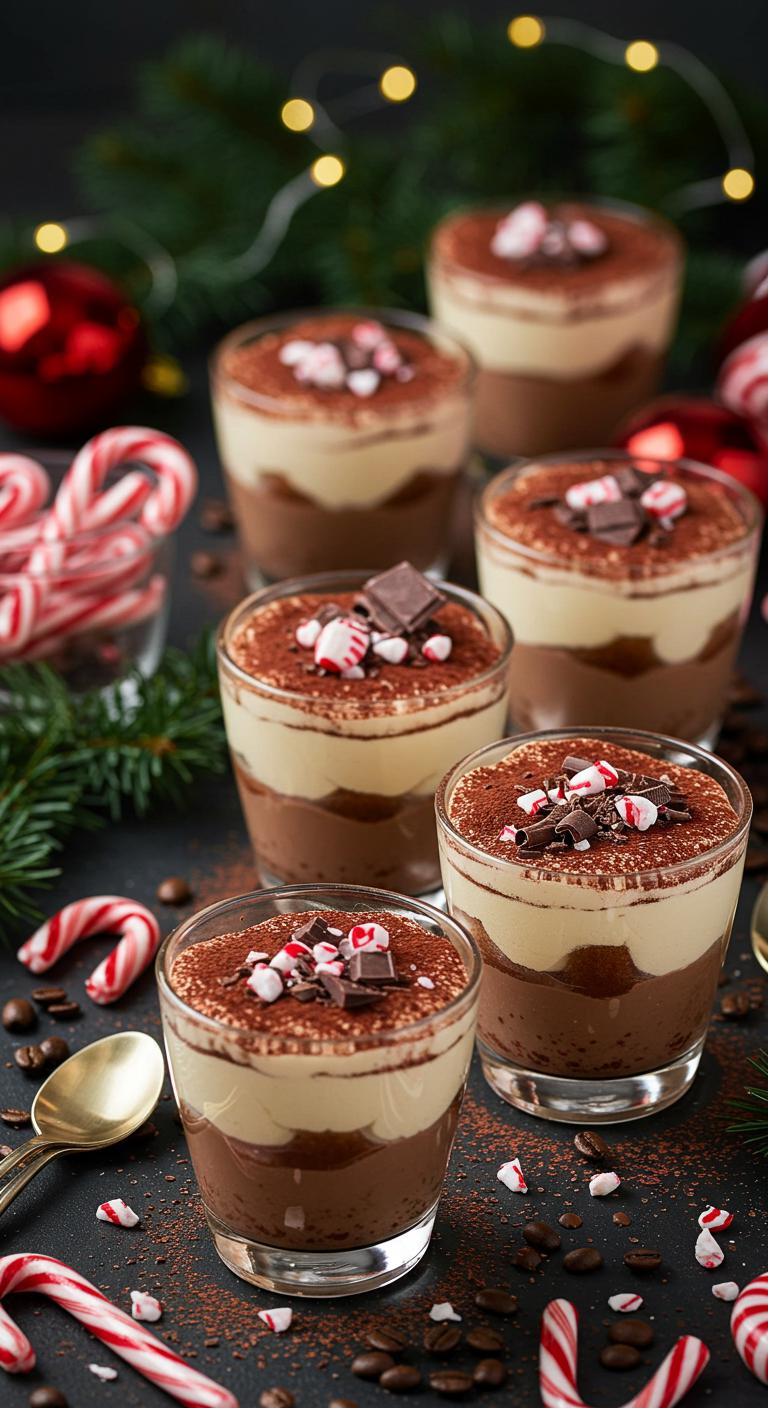 A festive twist on a classic—peppermint mocha tiramisu turned into delightful individual cups.