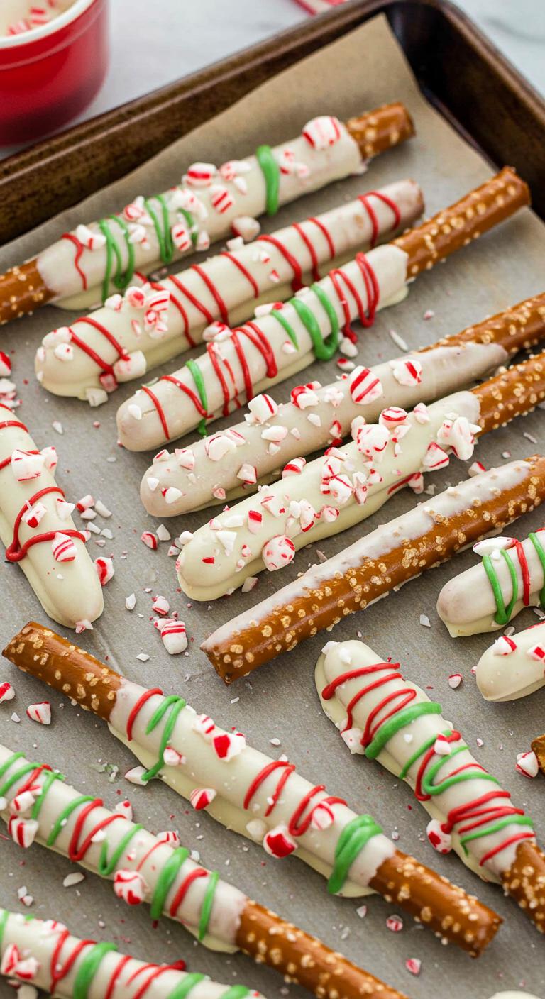 Crunchy pretzel rods dipped in peppermint chocolate — festive, snappy, and impossible to resist.