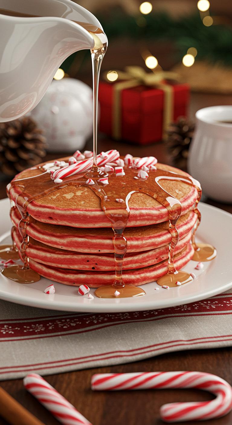 - Drizzle warm peppermint syrup over stacked pancakes and finish with extra crushed candy cane for crunch.