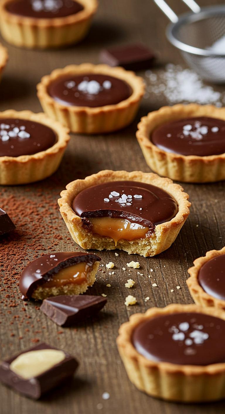 - Sprinkle each tartlet with a pinch of flaky sea salt and chill 10–15 minutes until set.