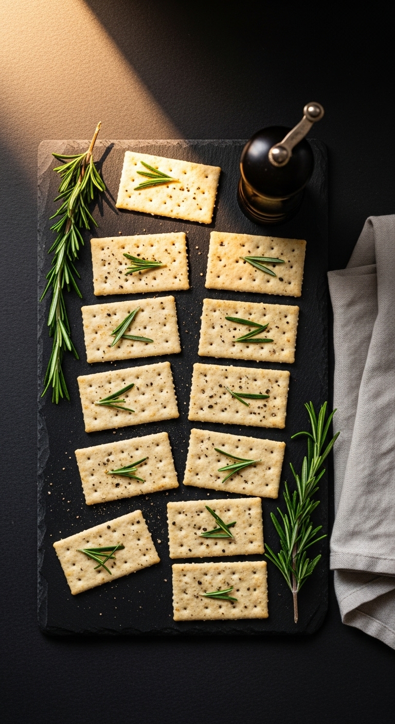 Serve on a wooden board with slices of aged cheddar and apple. Garnish with fresh rosemary sprigs and a drizzle of honey for contrast. Pair with a crisp white wine or an herbal iced tea. Store in an airtight container at room temperature for 4–5 days. You can make dough ahead and refrigerate up to 24 hours.