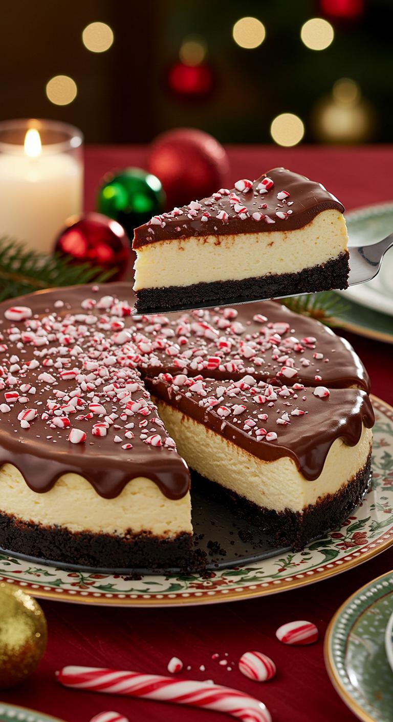 Peppermint Bark Cheesecake With Chocolate Ganache