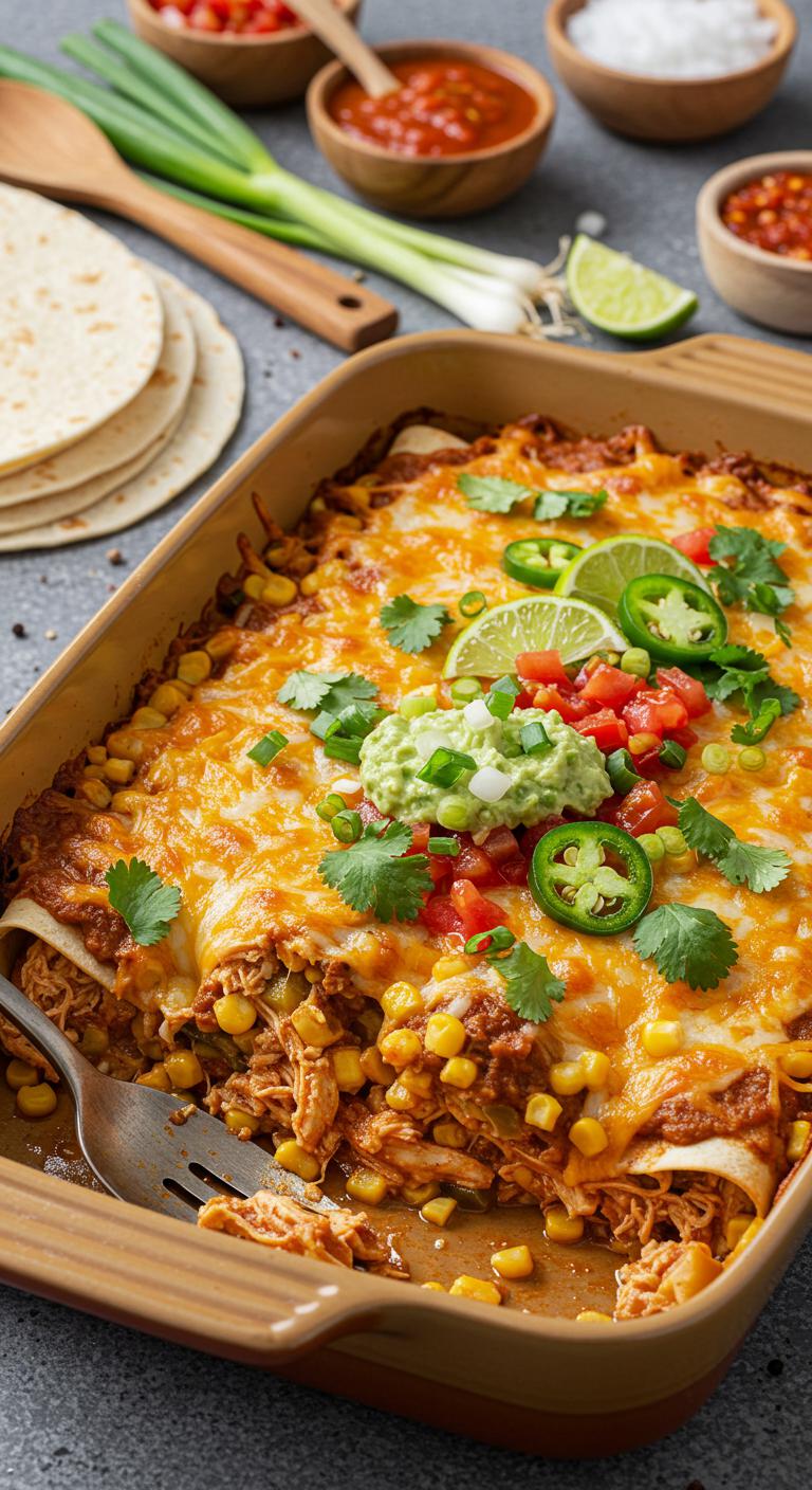 Tex-Mex Chicken Enchilada Casserole — cheesy, spicy, and perfect for weeknight comfort with a southwest twist.