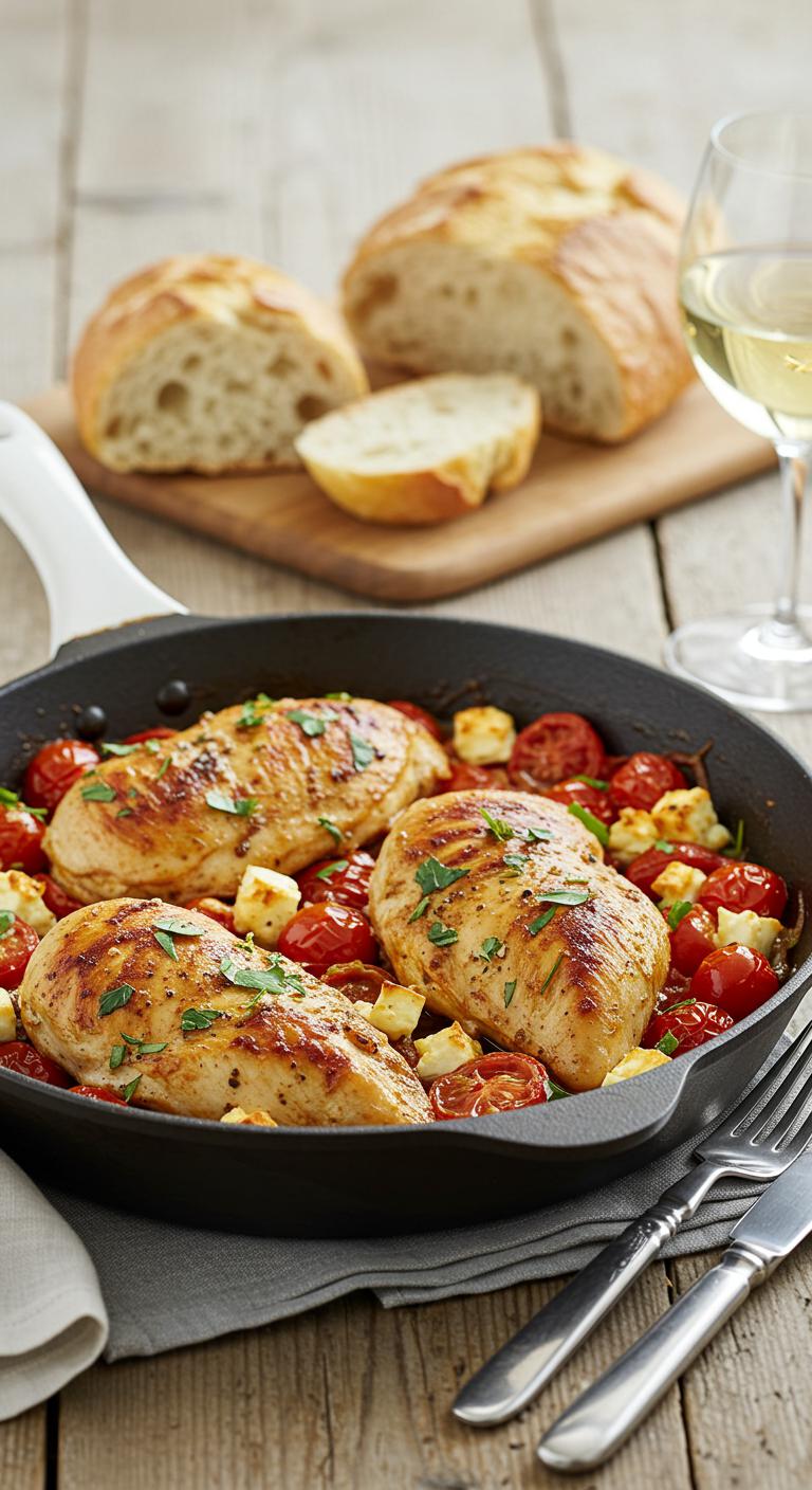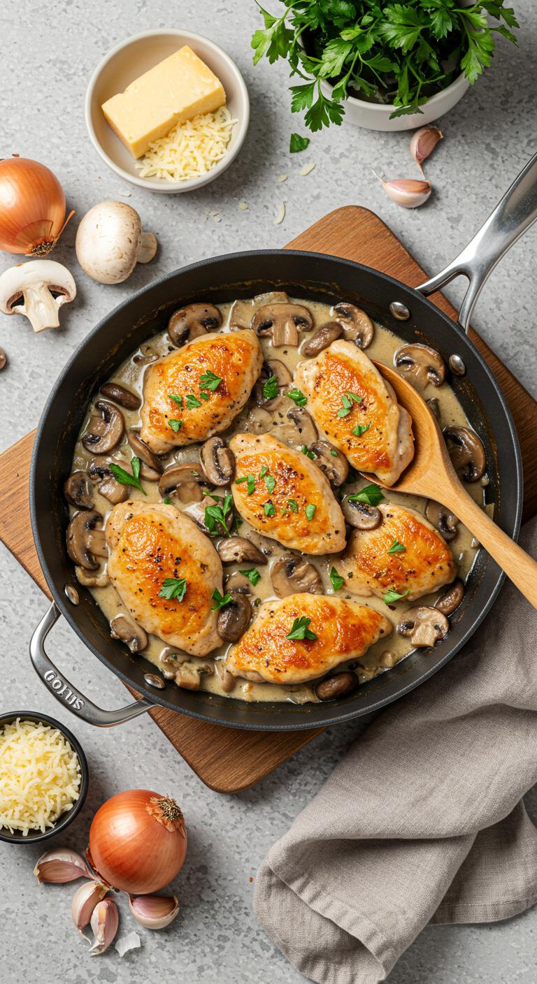 - Season the chicken with salt and pepper and brown it in the skillet for 3–4 minutes until lightly seared but not fully cooked; remove and set aside.