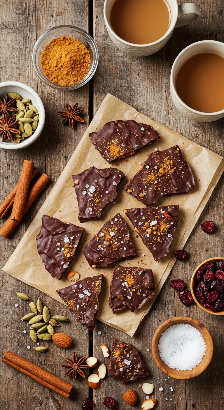 Spiced Chai Dark Chocolate Bark — warm chai spices meet rich dark chocolate for a cozy, crunchy treat.