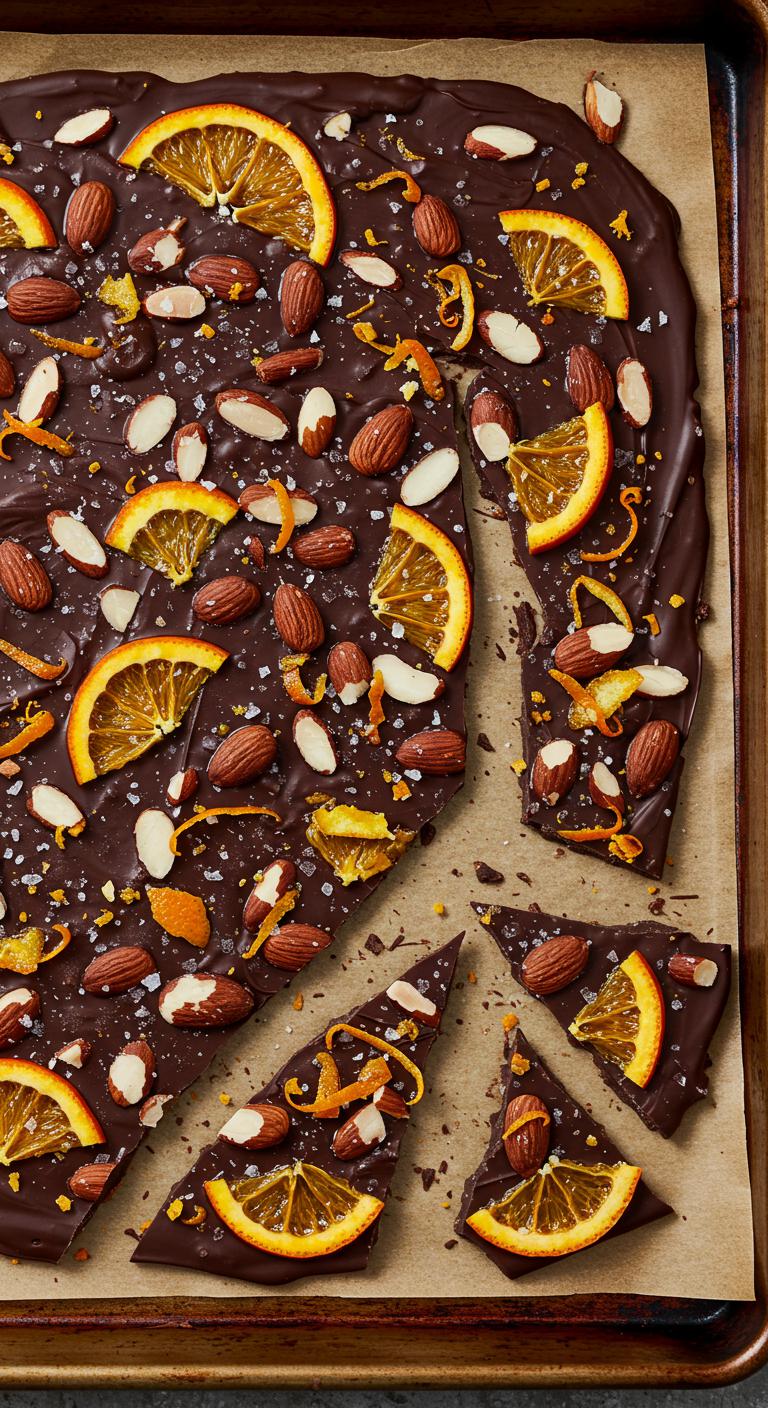 - Scatter the chopped roasted almonds on top, pressing gently so they stick.