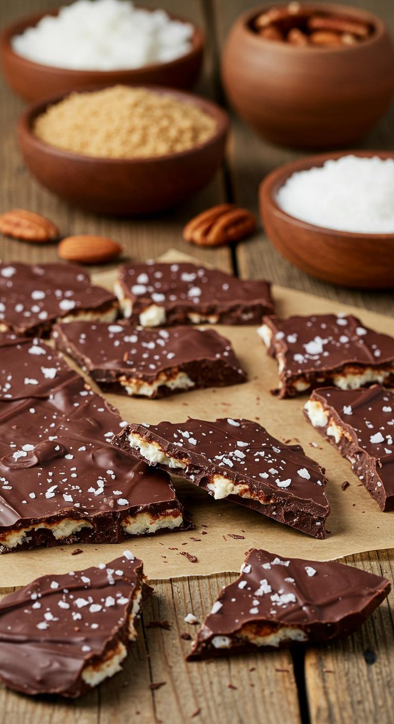 - Sprinkle flaky sea salt over the bark while the chocolate is still soft.