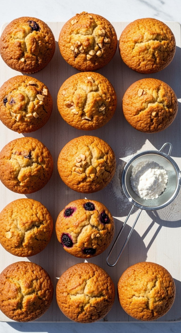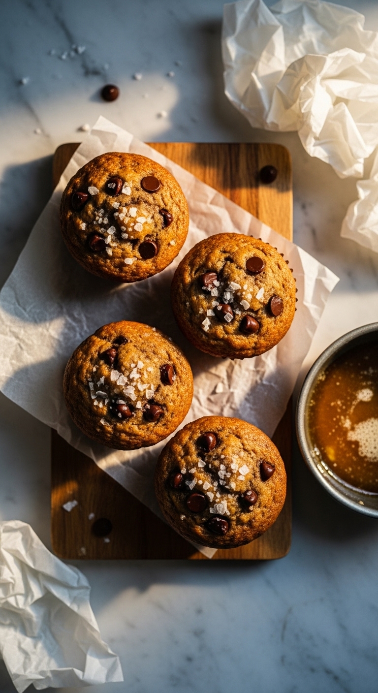 Plate warm with extra flaky salt on top for contrast. Serve alongside yogurt or a fruit salad for a balanced snack. Store airtight at room temperature 2 days or refrigerate up to 5 days. Brown-butter muffins freeze well — wrap individually and thaw before serving.