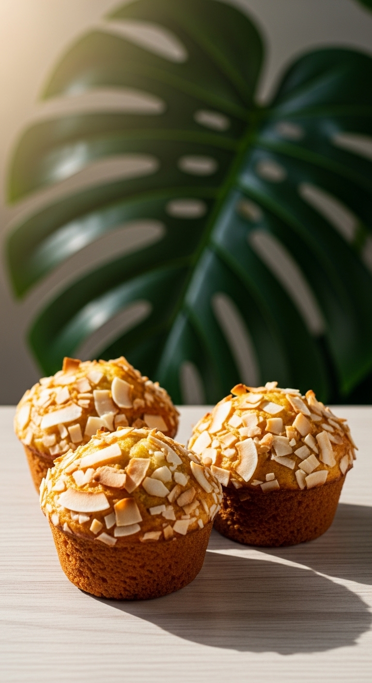 - Fill muffin cups 3/4 full and top with remaining coconut.