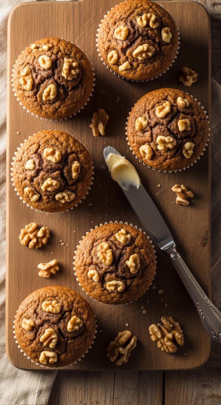 Serve warm with a smear of cream cheese or butter. Pair with milk or a nutty tea for adults. Store airtight 2–3 days. For nut-free option, omit walnuts and add toasted oats.