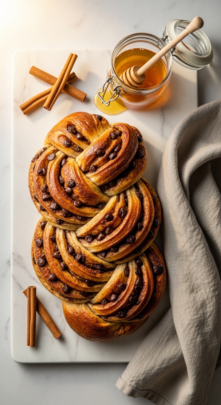 This loaf brings warm cinnamon spice to Chocolate Chip Sourdough Bread for Dessert. A fragrant cinnamon-sugar swirl wraps around melted chocolate chips for a seasonal feel. The crumb is soft, with a lightly crisped top. It’s ideal for cooler months or any time you want spice with chocolate. You’ll love the aroma as it bakes.