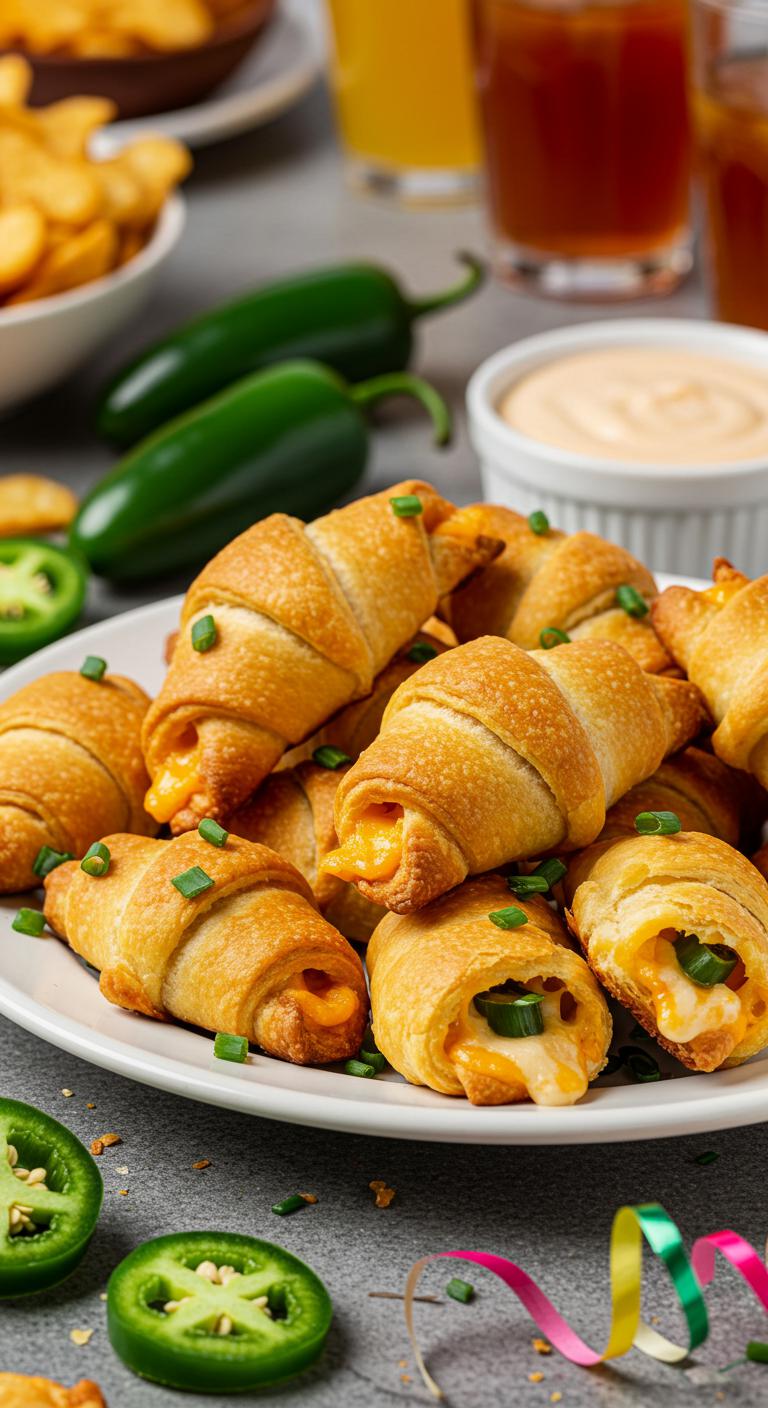 A gooey, spicy twist on a party classic — crispy crescent rolls stuffed with cheesy jalapeño popper goodness.