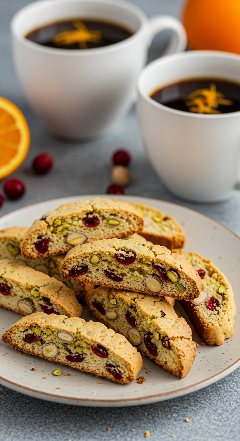Cranberry Pistachio Biscotti — crisp, zesty twice-baked cookies perfect for dunking in coffee or cocoa.