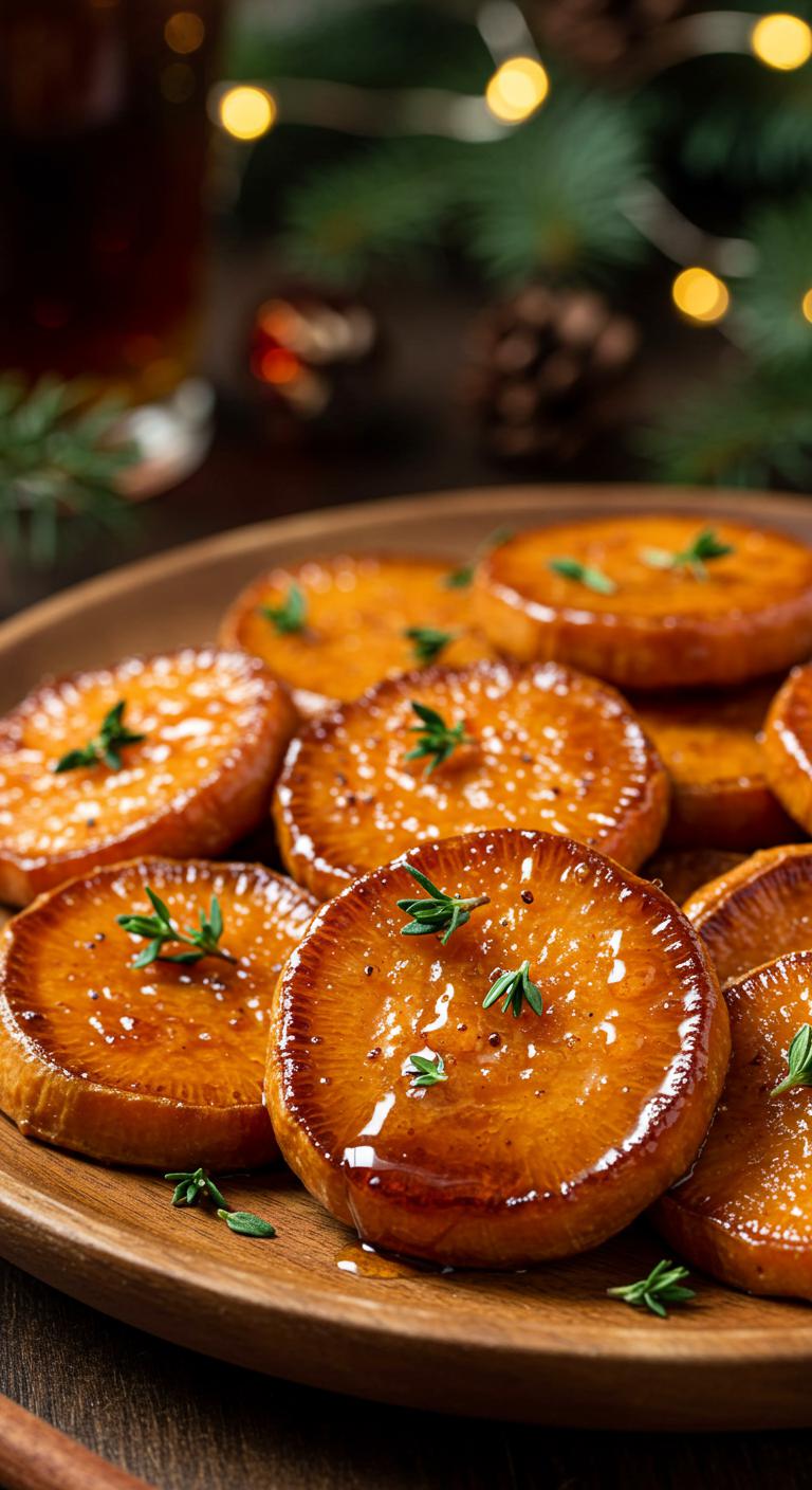 Sweet, caramelized maple-glazed sweet potato rounds with a crispy edge—holiday comfort in every bite.