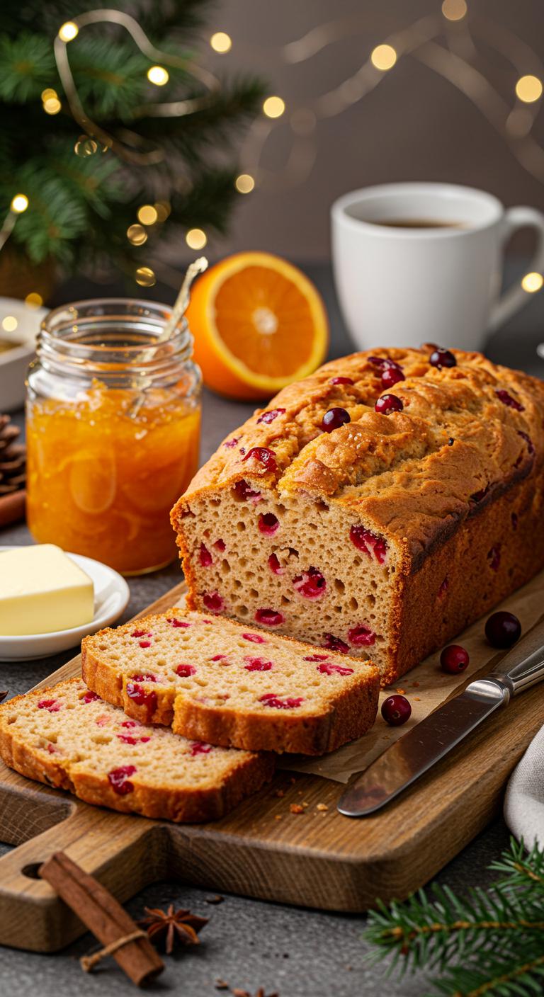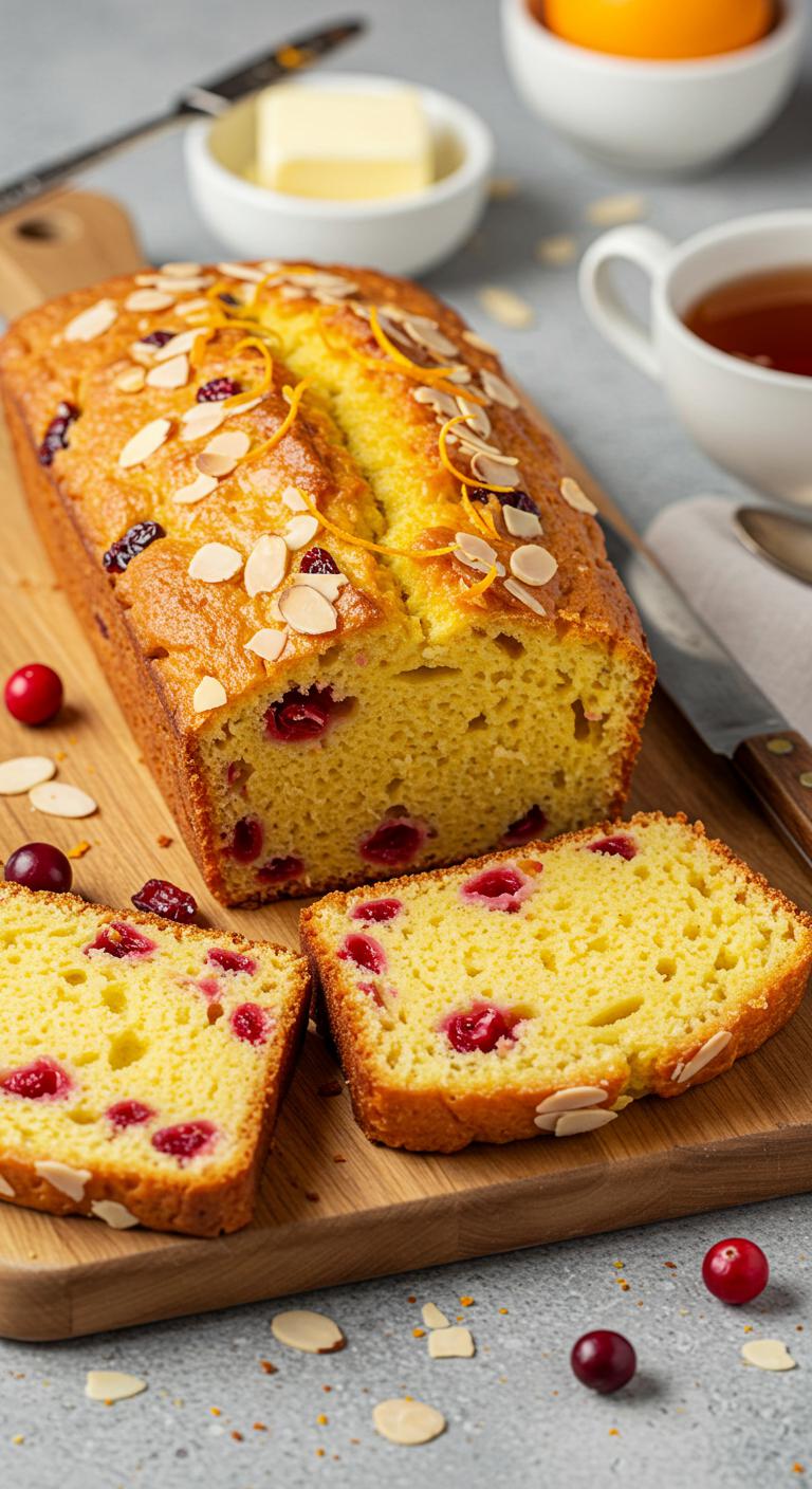 Bright, citrusy loaf studded with tart cranberries and crunchy almonds — perfect for breakfast or tea.