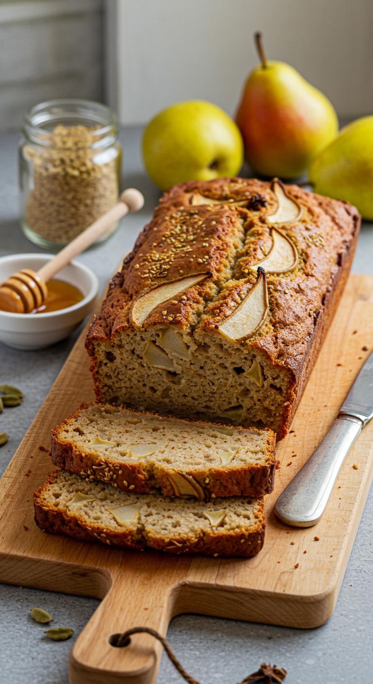 Serve slightly warm with butter or a drizzle of honey — enjoy that cardamom-pear aroma!