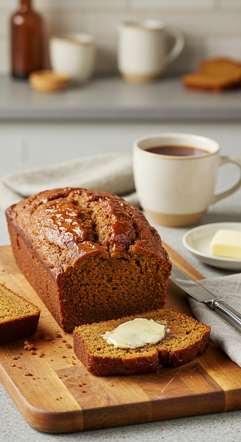 Warm, spiced loaf with a soft crumb and a shiny molasses top—perfect for cozy afternoons.
