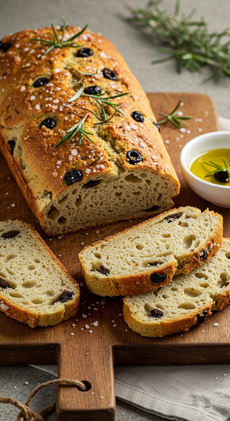 A fragrant, rustic olive loaf studded with rosemary and finished with crunchy sea salt — perfect for sandwiches or to serve with olive oil.