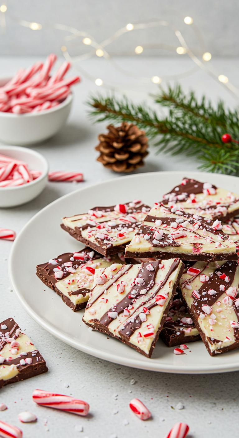 - Immediately sprinkle crushed peppermint candies evenly over the white chocolate, pressing down lightly so pieces adhere.