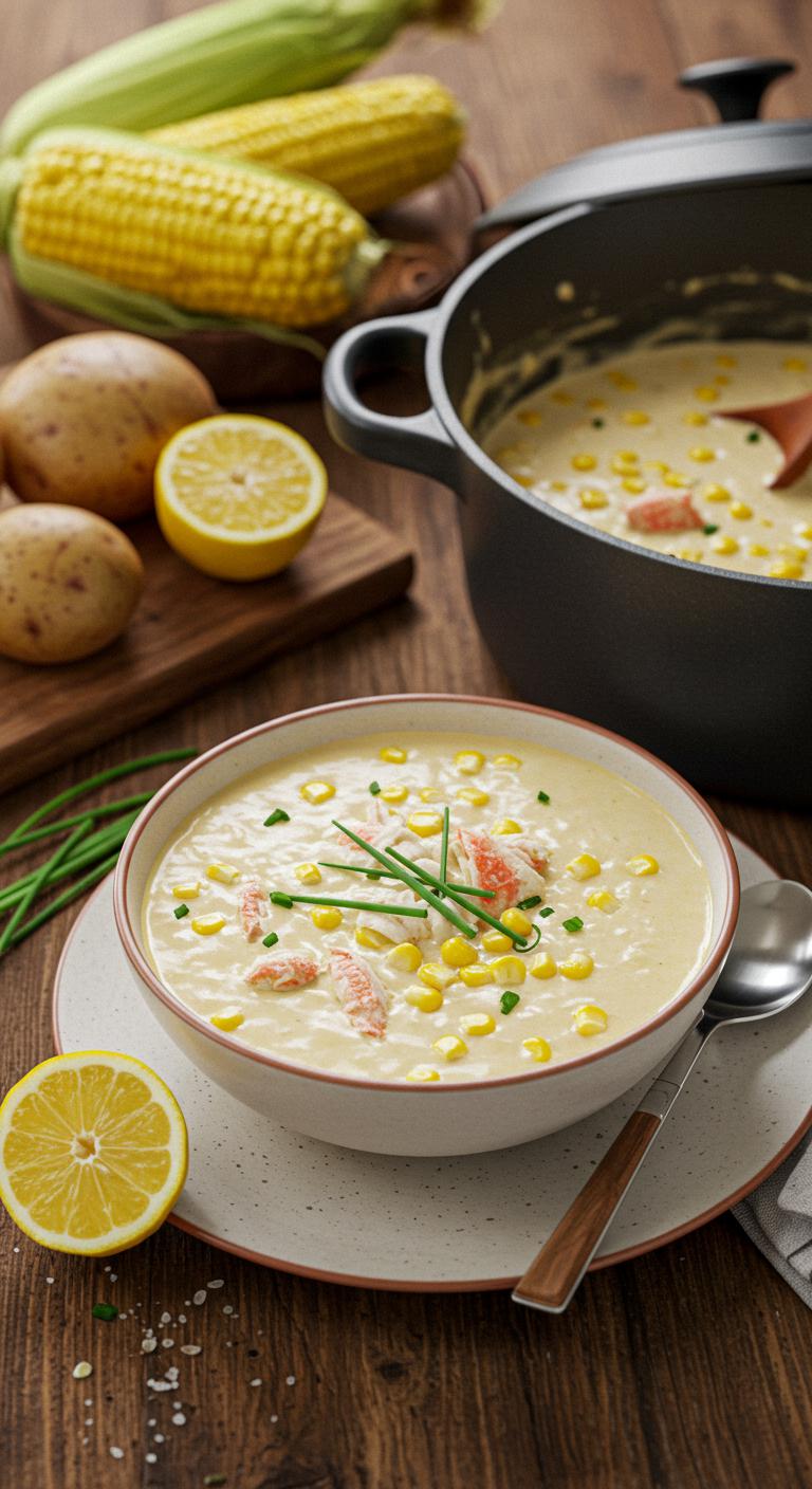 Creamy Crab and Corn Chowder — a cozy, velvety bowl of sweet corn and tender crab that tastes like holiday comfort.