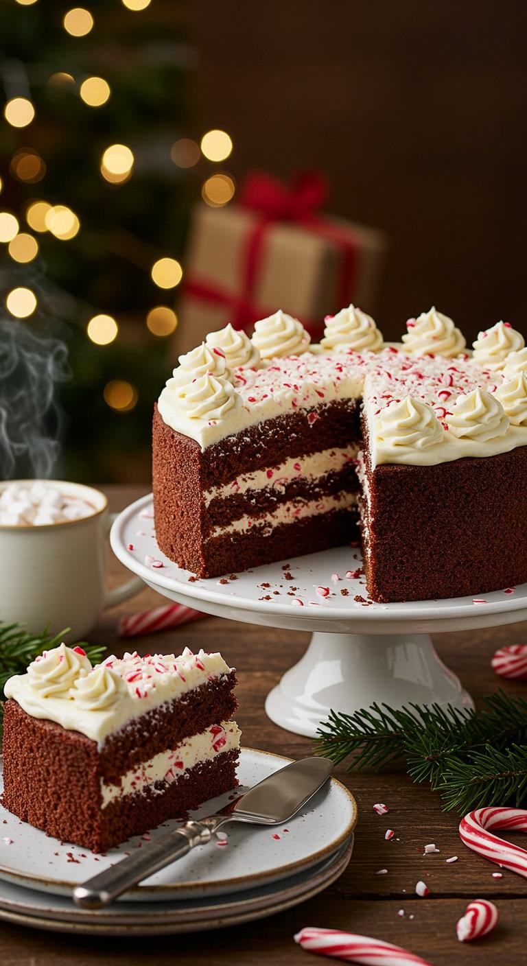 Chocolate Peppermint Layer Cake — a festive, fudgy showstopper with bright peppermint crunch.