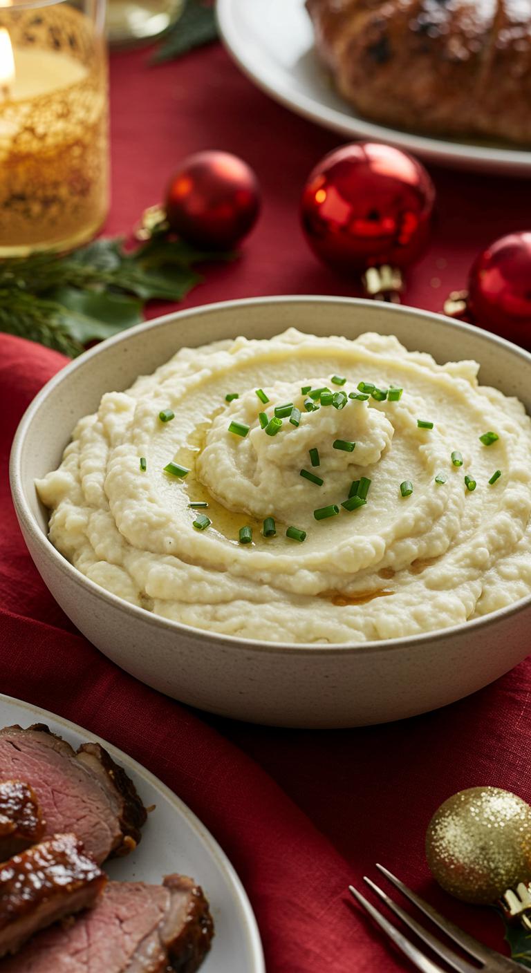 A velvety, buttery garlic mashed cauliflower that tastes indulgent but keeps your holiday low-carb and festive.