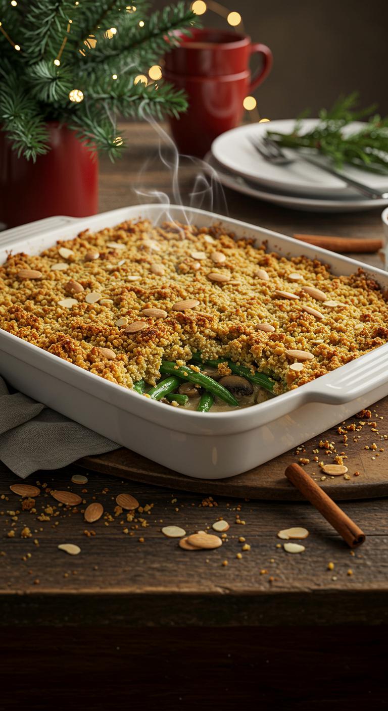 Cheesy Green Bean Casserole With Almond Flour Topping