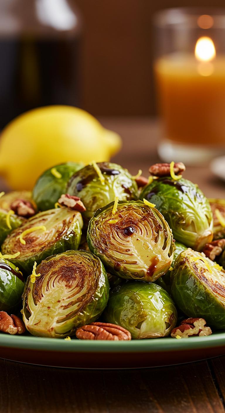 - Transfer roasted sprouts to a serving bowl, drizzle with the balsamic glaze, and toss gently to coat.