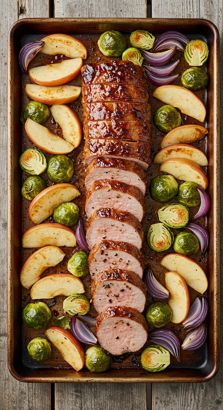 Maple-Glazed Sheet Pan Pork Tenderloin With Roasted Apples and Brussels Sprouts