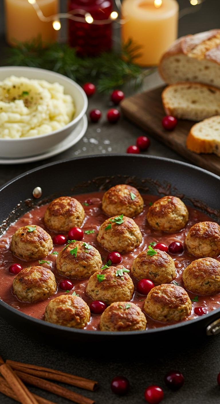 Serve these meatballs over mashed potatoes, egg noodles, or crusty bread for soaking up the sauce — perfect for holiday comfort in one skillet.