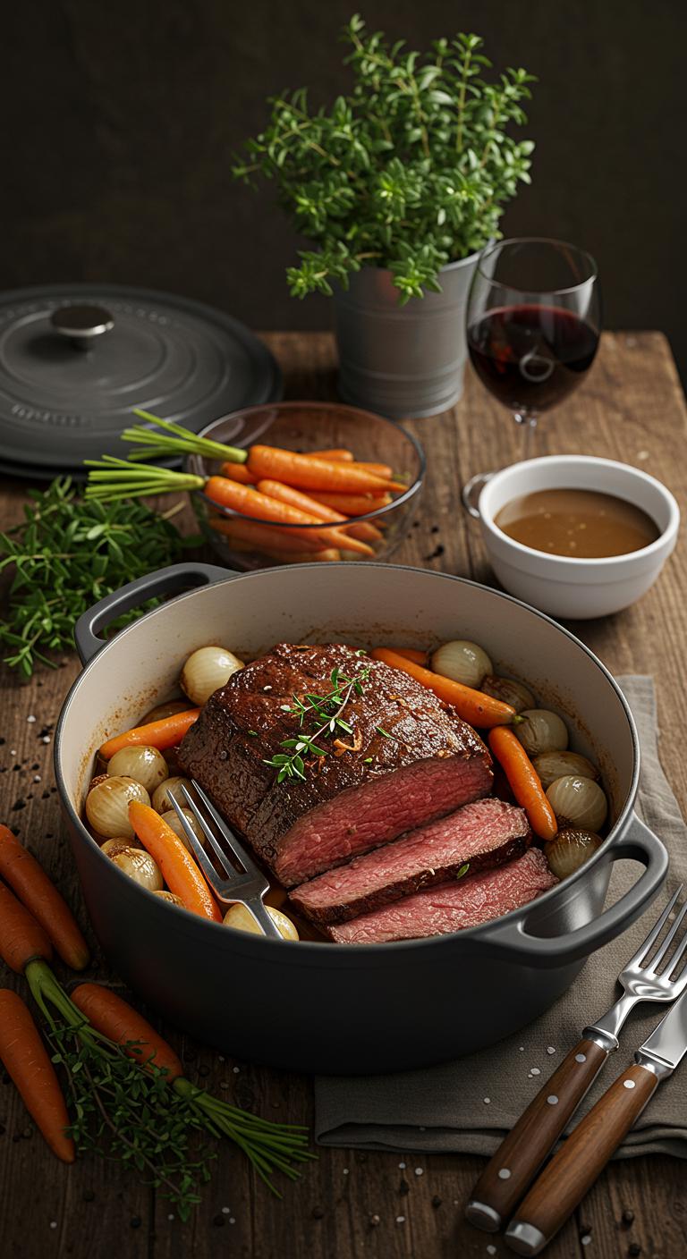 Dutch Oven Beef Pot Roast With Carrots and Pearl Onions