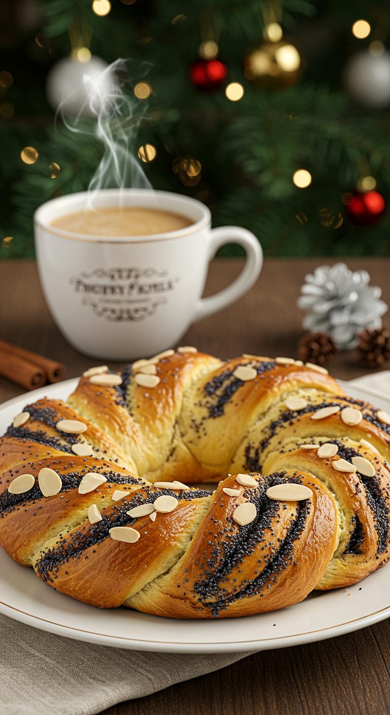 Enjoy this kringle warm for the best almond-poppy flavor and a bit of holiday sparkle!