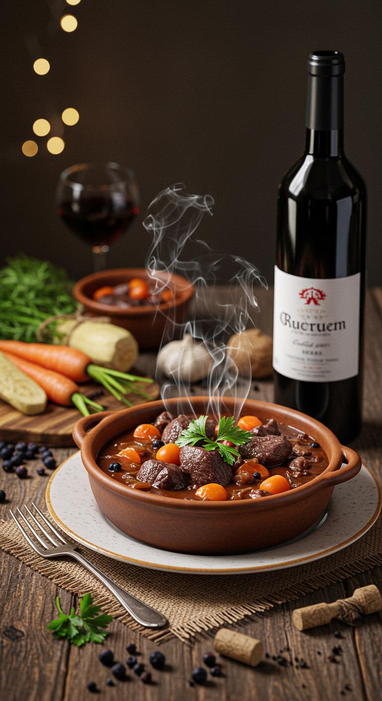 A warm, rustic venison stew scented with juniper — like a Nordic hug in a bowl.