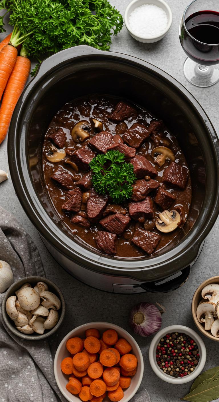 Crockpot Beef Bourguignon — cozy, rich French comfort made effortless in your slow cooker.
