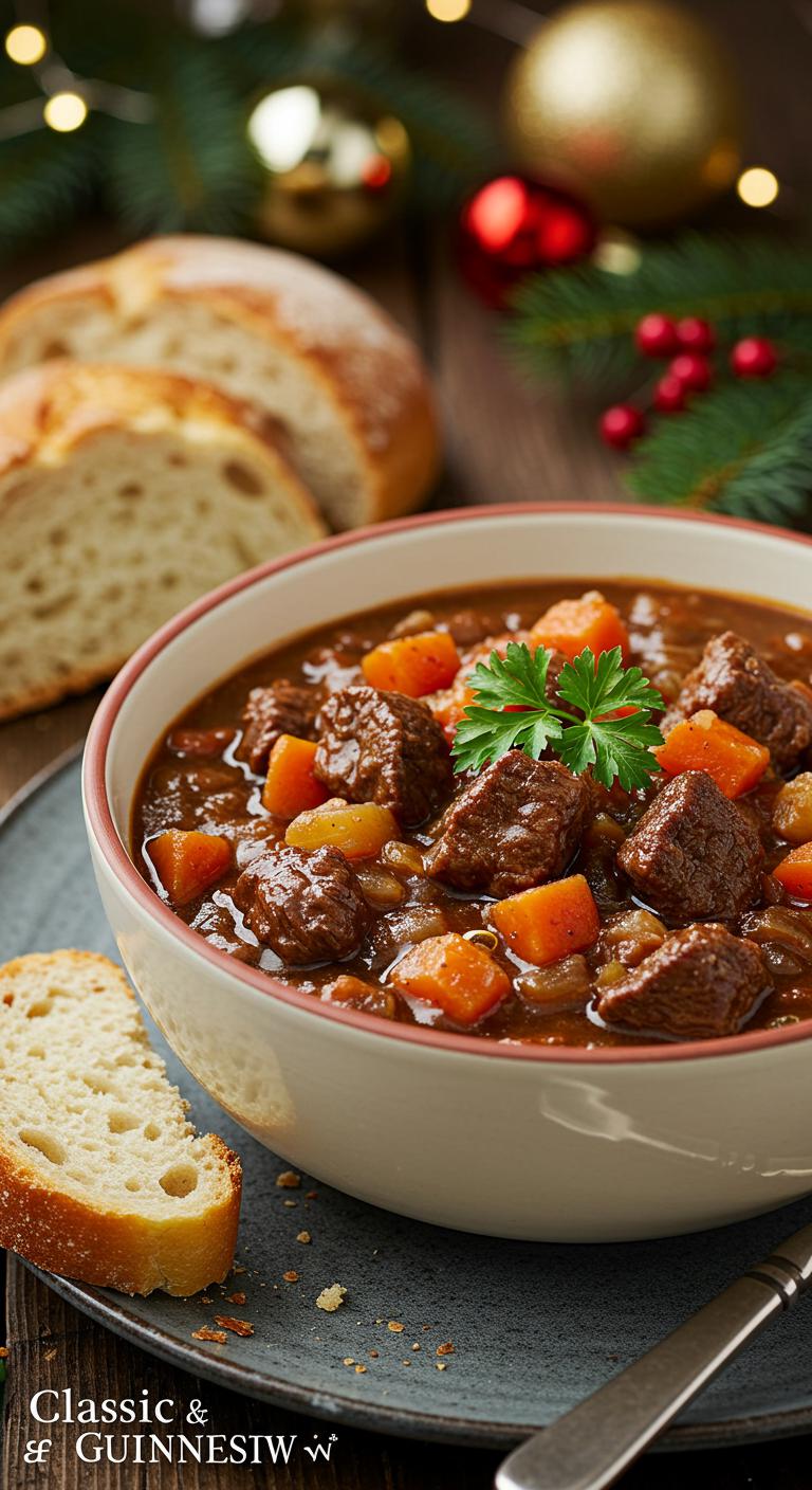 Classic Beef and Guinness Stew — rich, hearty, and perfect for cozy holiday nights.