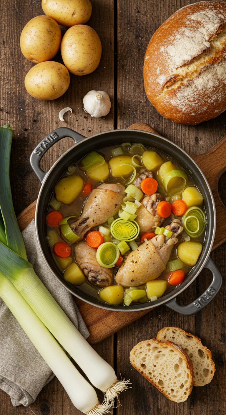 A cozy, comforting chicken, leek, and potato stew that tastes like a warm holiday hug.